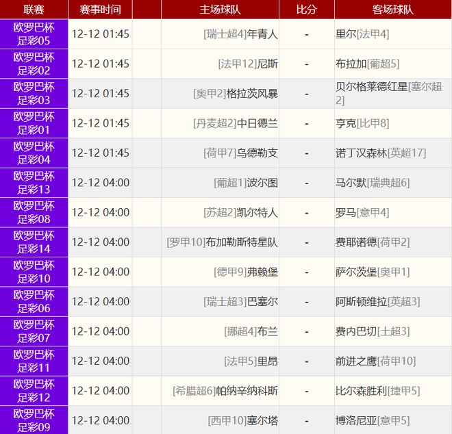 其他赛事比分: